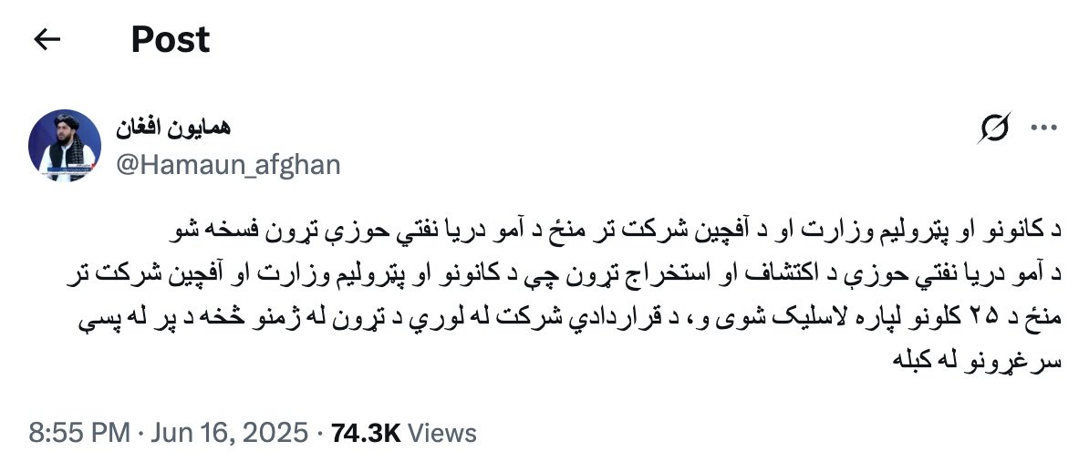 After the agreement was concluded, two anonymous CAPEIC employees came forward alleging they and their colleagueswere extorted by Afghanistan’s Ministry of Mines and Petroleum and the Taliban. Their testament of the events, given to NPR in August 2025, included violent intimidation, passport confiscation, hostage taking and demands to abandon their equipment and Kabul bank account. They also said they were told to share a written pledge stating they voluntarily exited the agreement. Like the claims made by AOGC workers, these have not been confirmed by the Taliban, Chinese officials or CAPEIC, and AOGC is said to continue the JV independently.