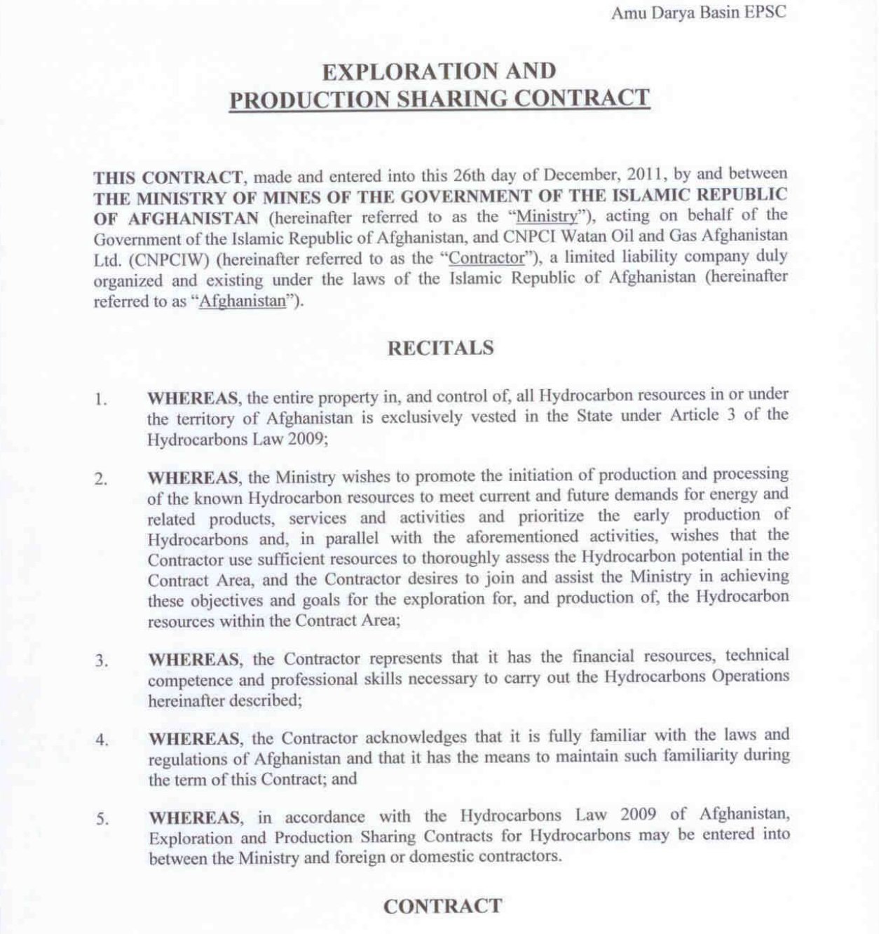 Pictured: Front page of the 2011 contract between the Watan Group and CNPCI.
